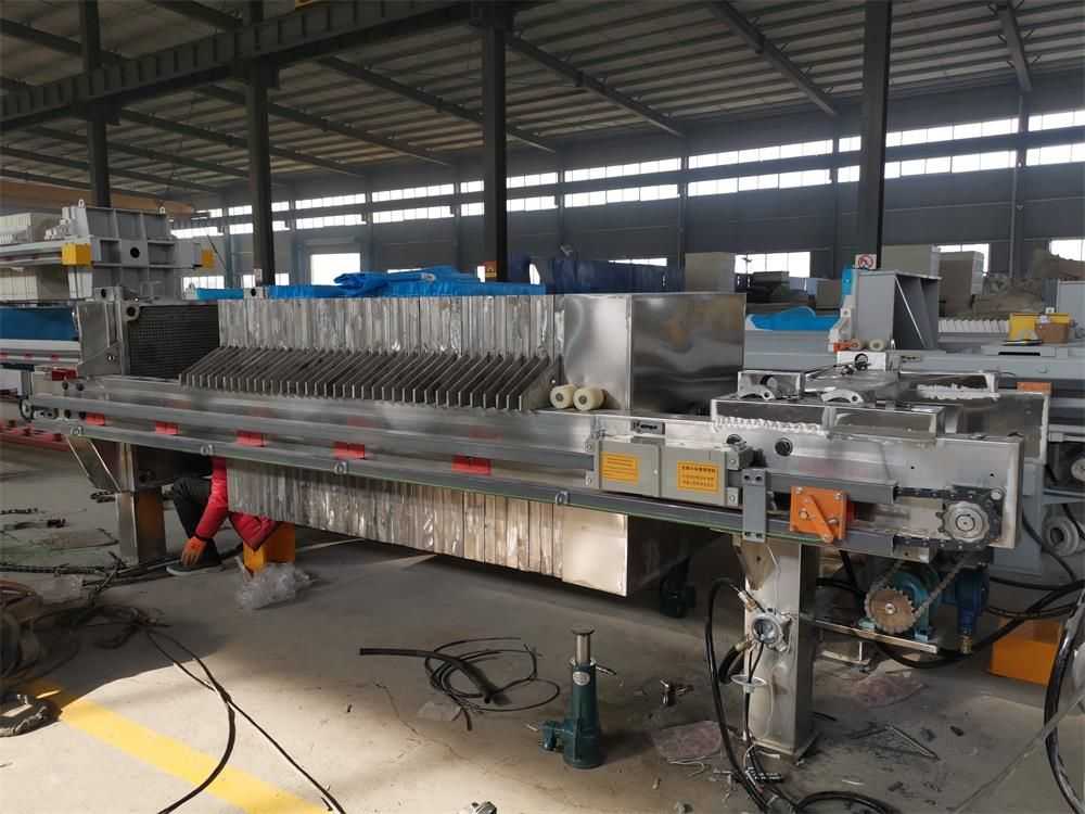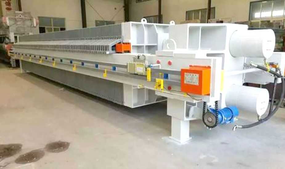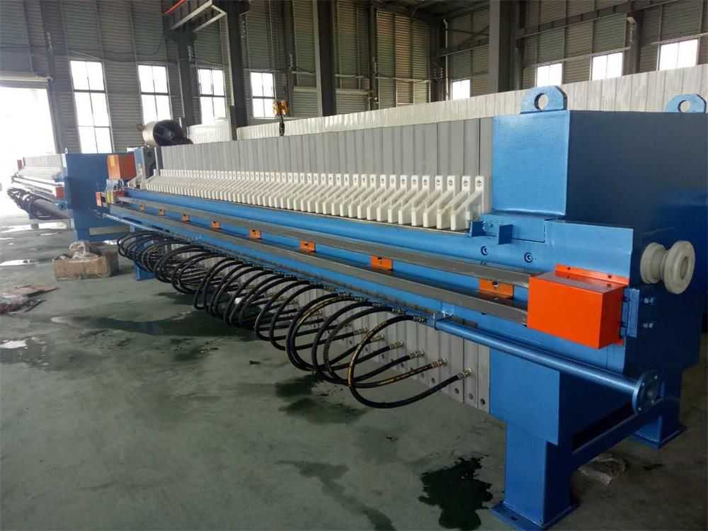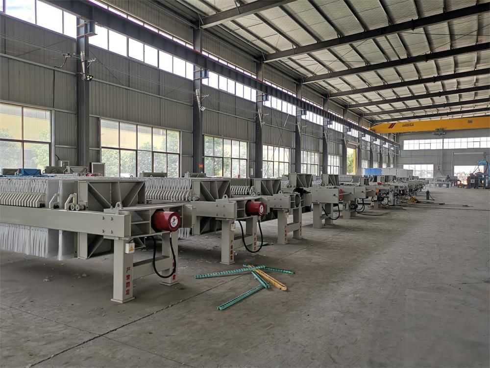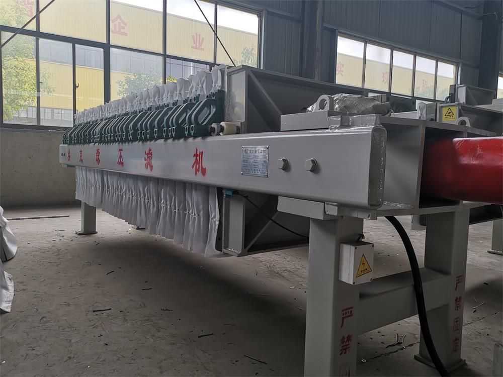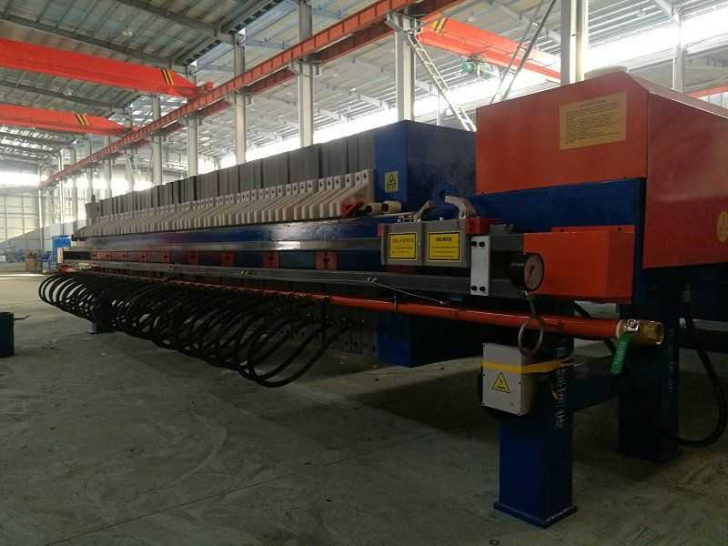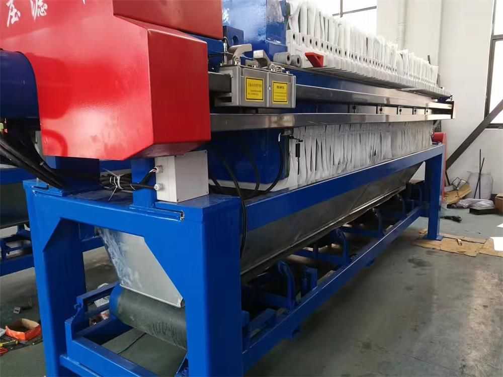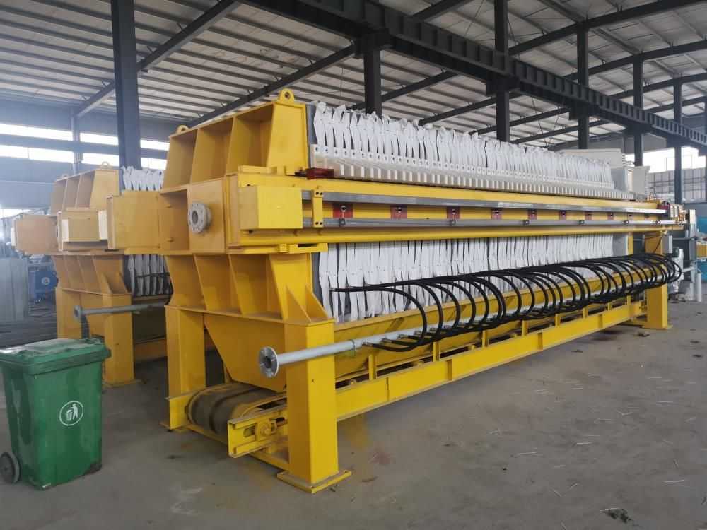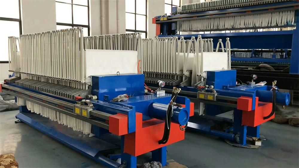 隔膜壓濾機和常規箱式壓濾機的主要區別在于,在濾板的兩側都增加了兩個彈性膜(復合橡膠膜是一個整體式膜。在操作期間,當進料完成時,將高壓流體介質注入膜中,并使整個膜膨脹以過濾濾餅,以進一步使濾餅脫水,這是壓力過濾。在隔膜壓濾機運行期間,液壓系統使用液壓油作為壓力載體來傳遞內部壓力。